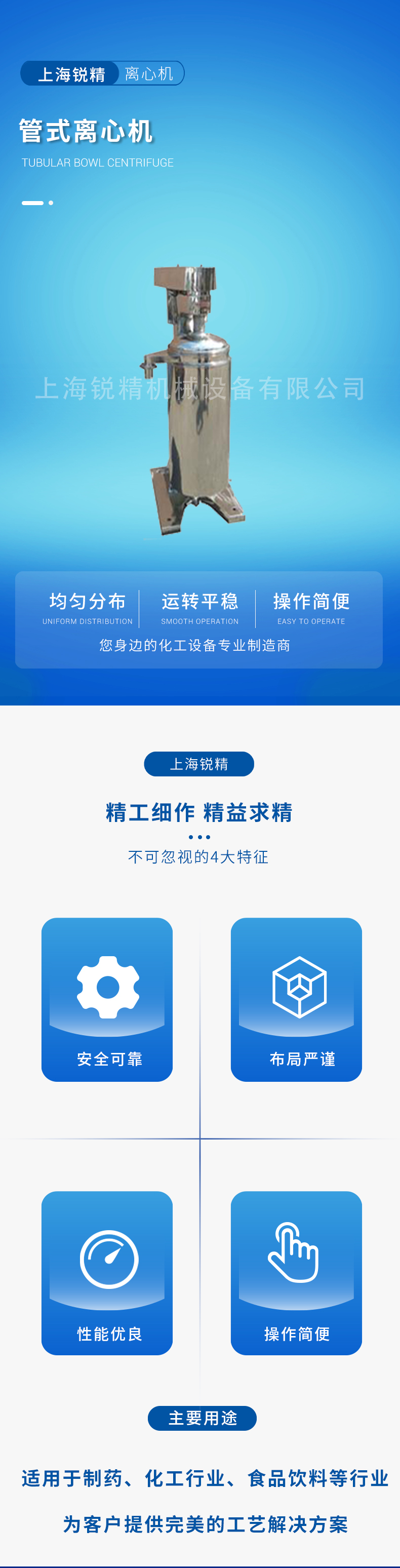 - 簡要描述:管式離心機?是一種利用離心力進行液體與固體顆粒、液體與液體混合物中各組分分離的設(shè)備。它主要由轉(zhuǎn)鼓、傳動裝置、機身和收集板等組成,
